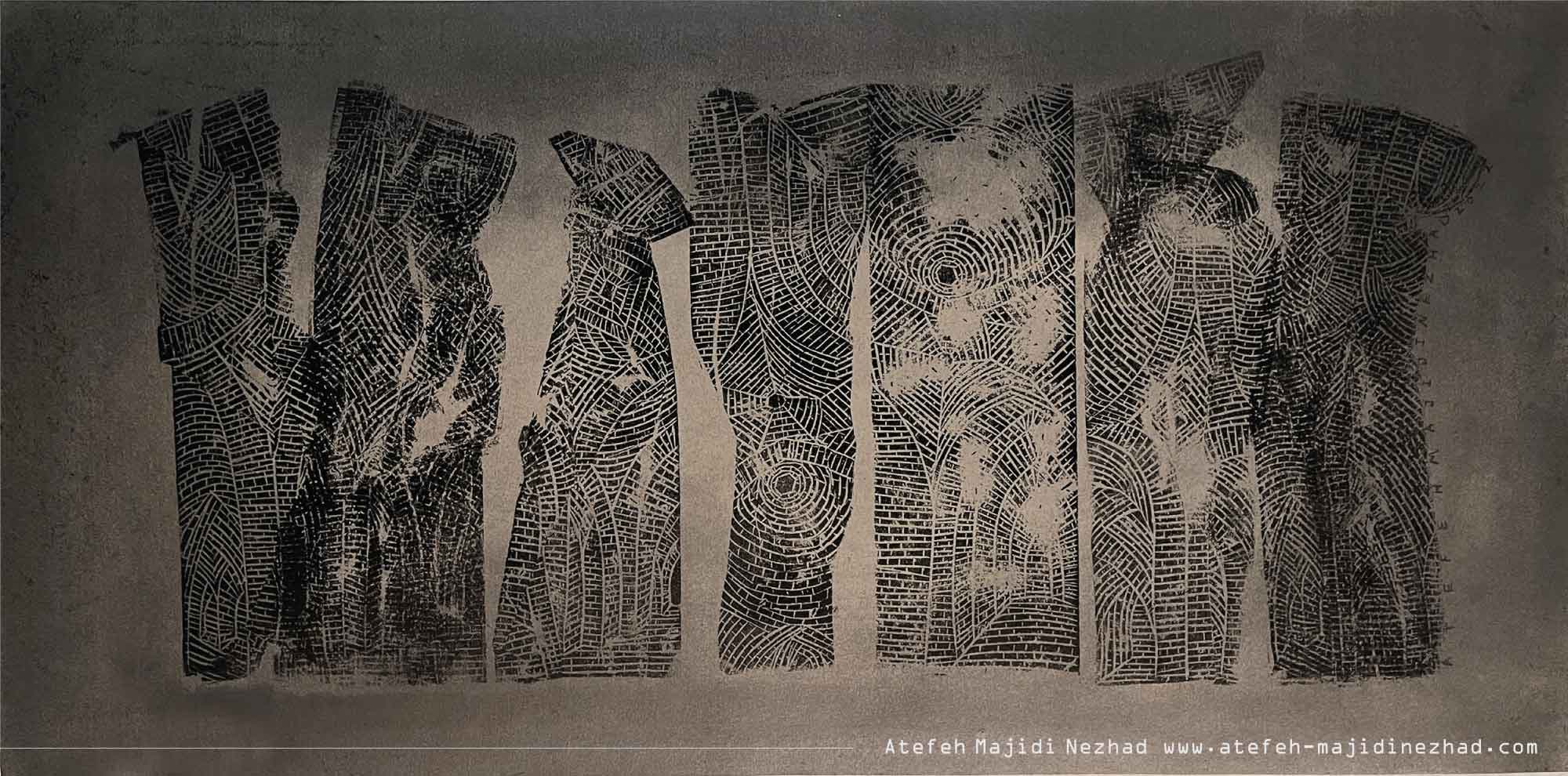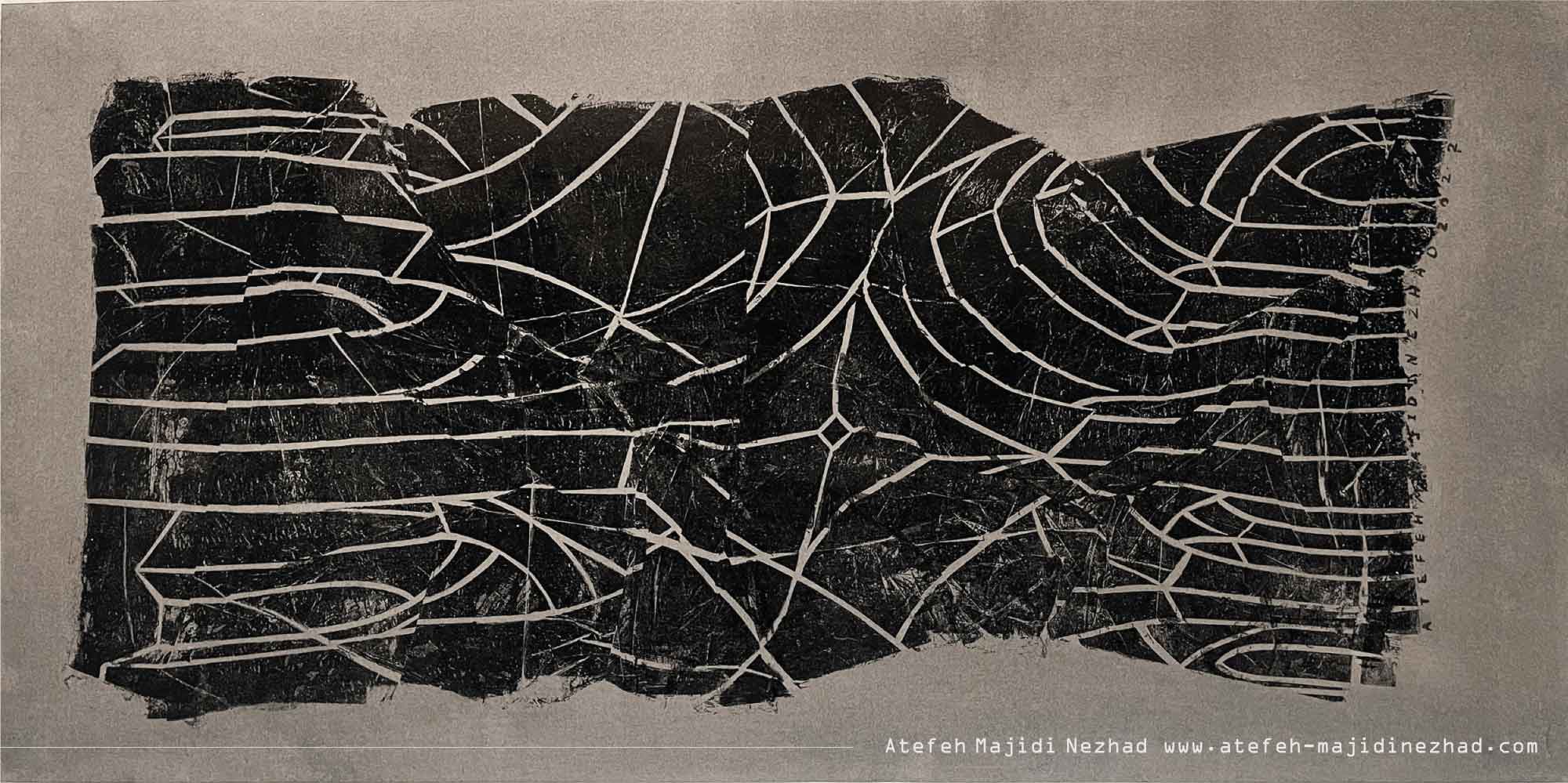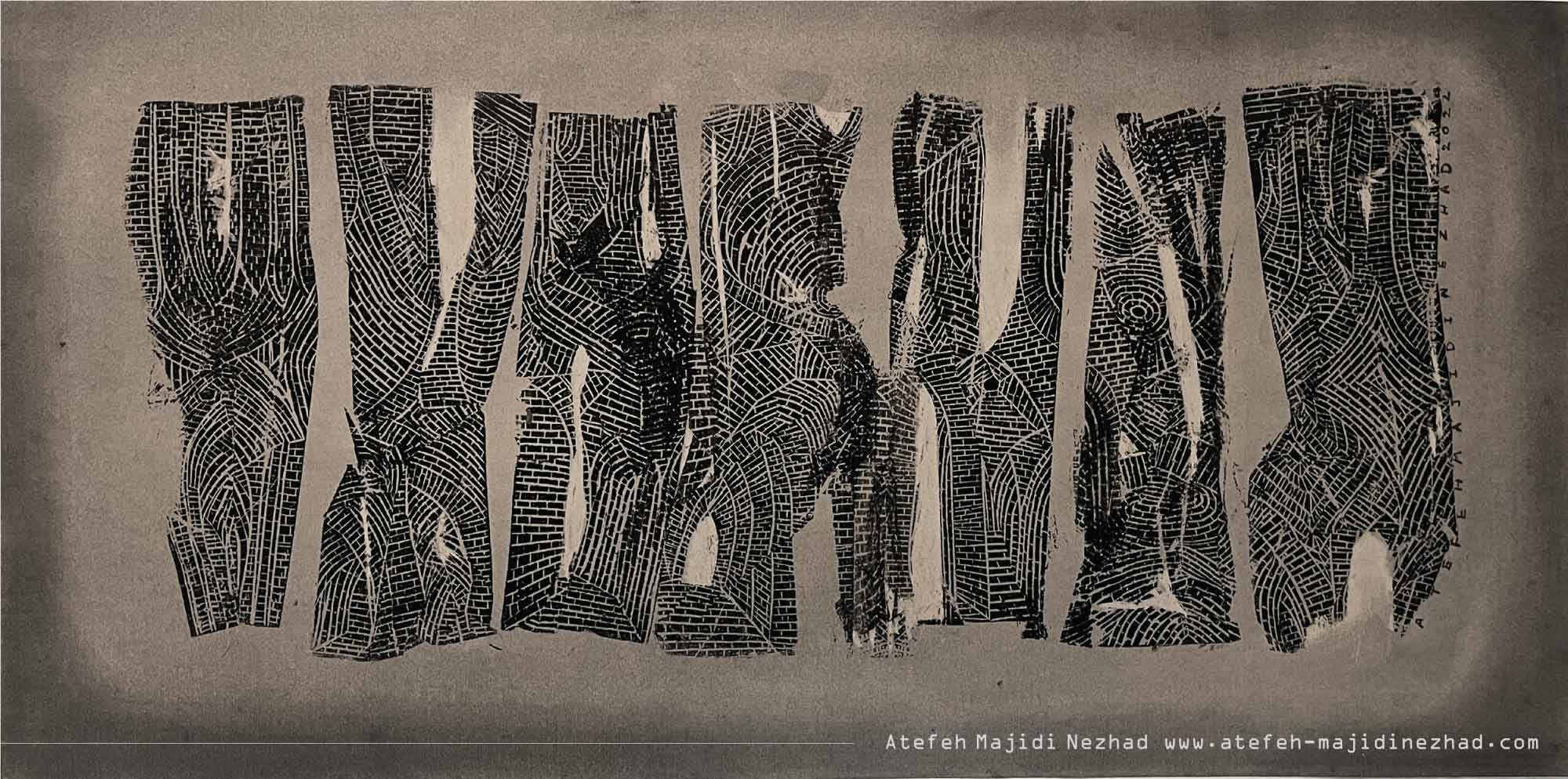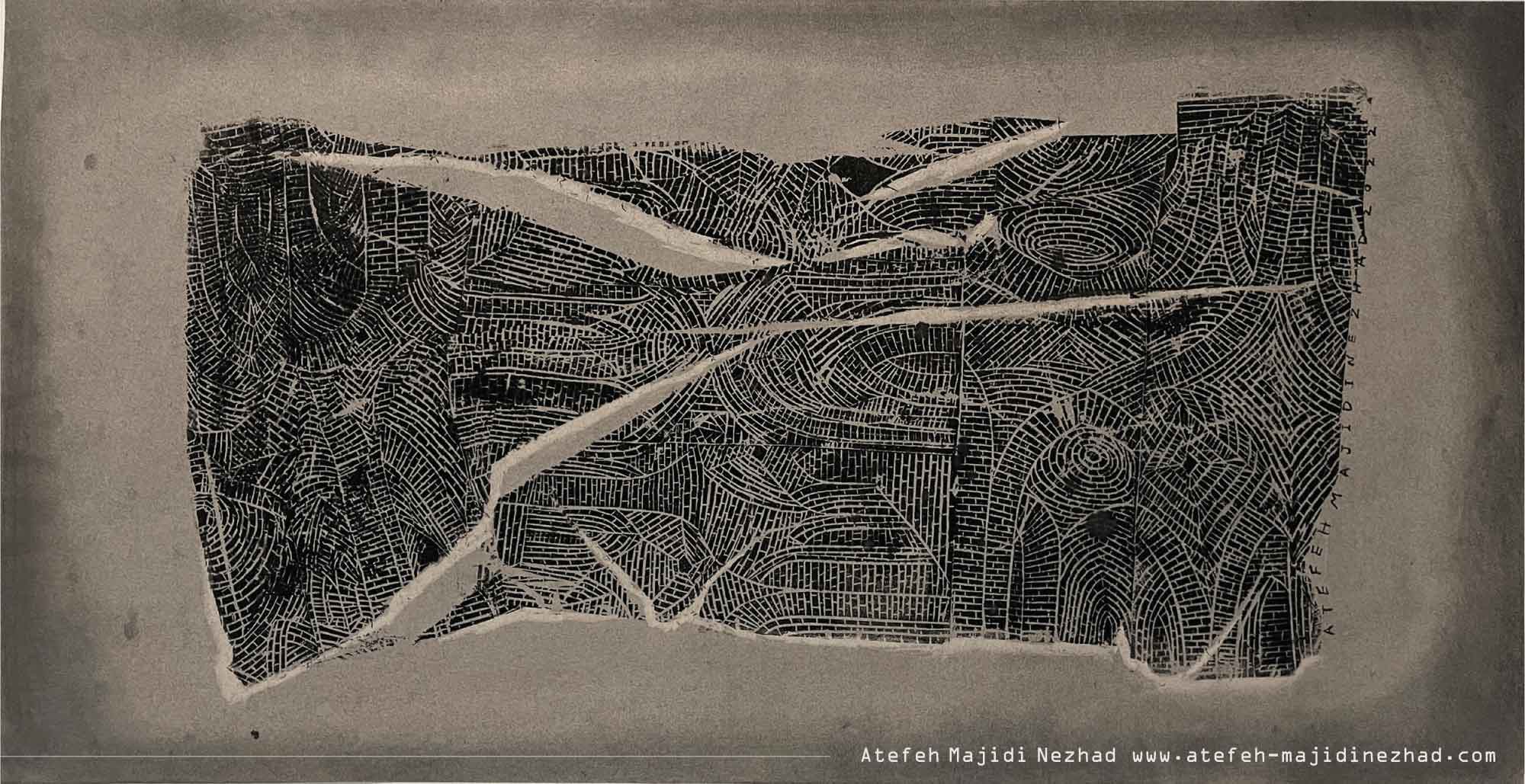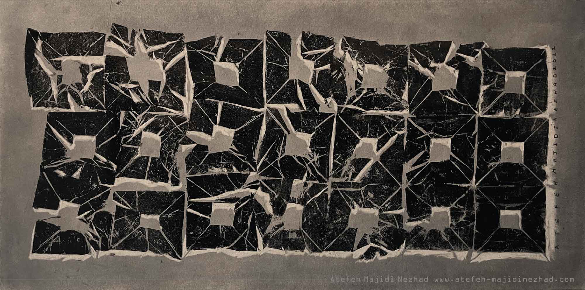 Due to the repetitions in architectural forms, I was able to notice the features of the relief pattern on the walls of Jame Mosque of Isfahan. Thinking about the concept of wall on paper and taking advantage of monotype techniques to interpret the historic quality of the building. Observing the reverse effect of the original performance is made possible by the monotype manual printing technique.